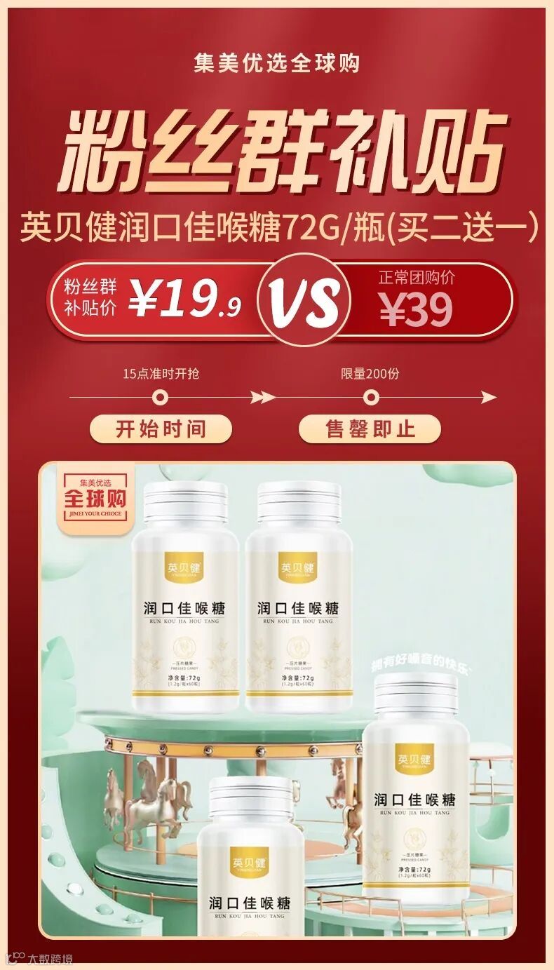 【粉丝群补贴】英贝健润口佳喉糖72g/瓶(买二送一)