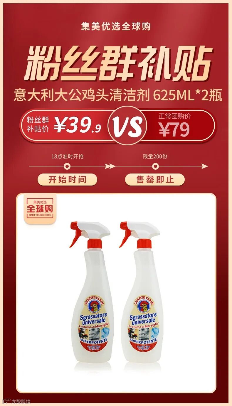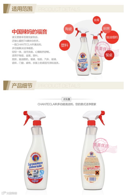 【粉丝群补贴】意大利Chante Clair大公鸡头管家万能清洁剂 625ml*2瓶(新老包装随机发) 原价:79元 粉丝群补贴价:39.9元