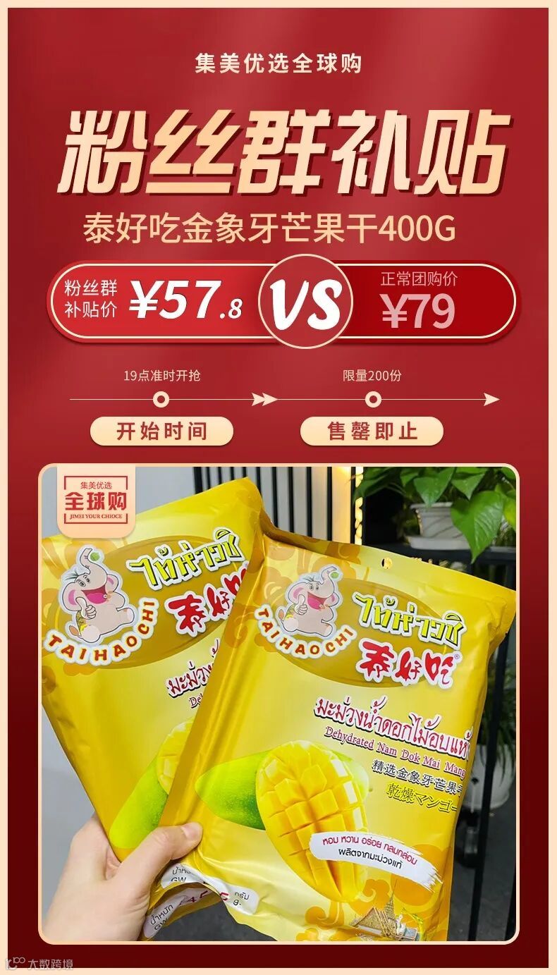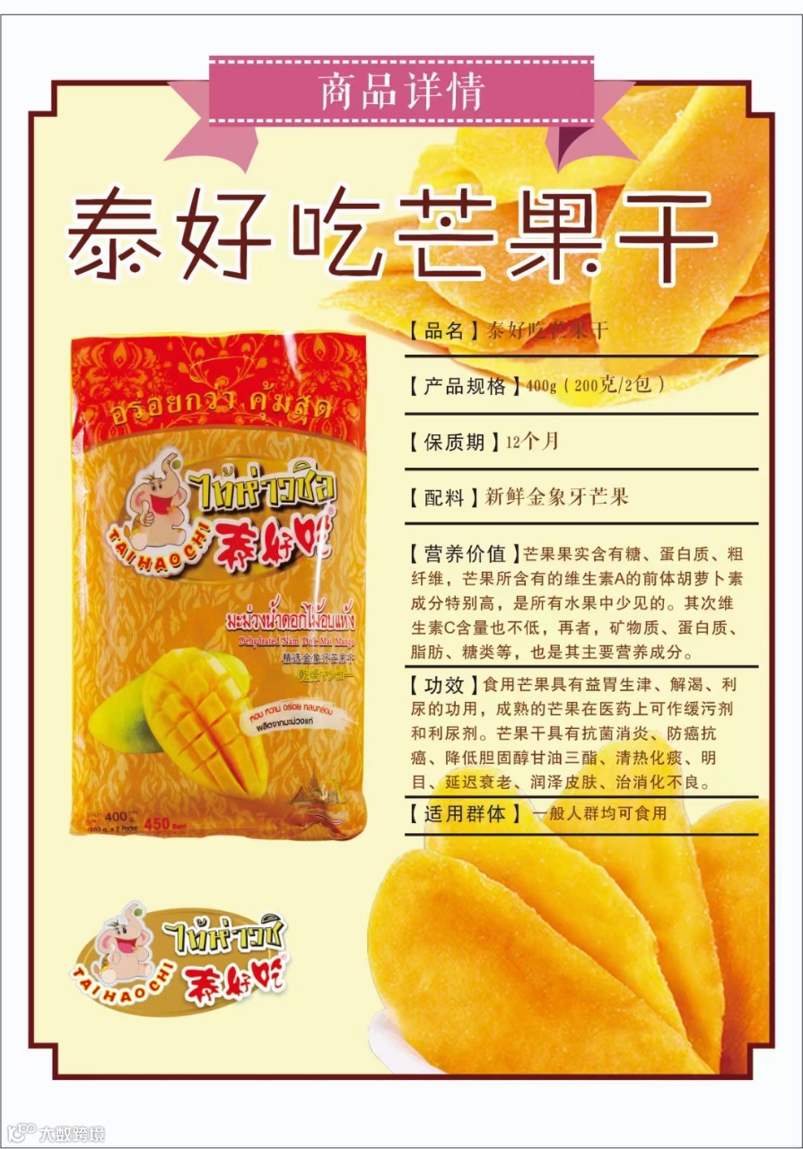 【粉丝群补贴】泰好吃金象牙芒果干400g(内含200G*2) 原价:79元 粉丝群补贴价:57.8元
