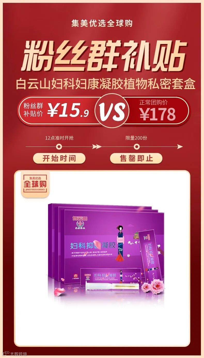 【粉丝群补贴】白云山妇科妇康凝胶植物私处护理私密套盒 1盒5支(建议4盒起拍 因为四盒一个周期) 原价:178元