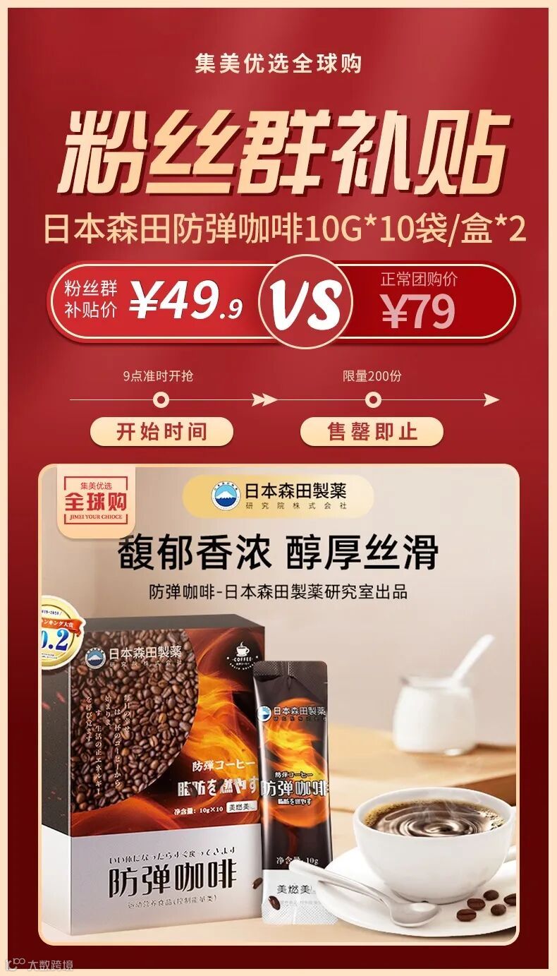 【粉丝群补贴】日本森田防弹咖啡10g*10袋/盒*2 原价:79元 粉丝群补贴价:49.9元