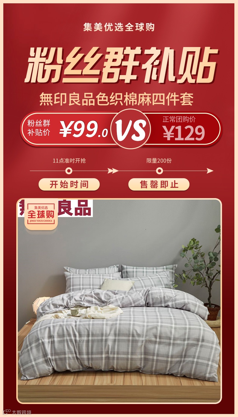 【粉丝群补贴】 無印良品色织棉麻四件套 原价:129元 粉丝群补贴价:99元