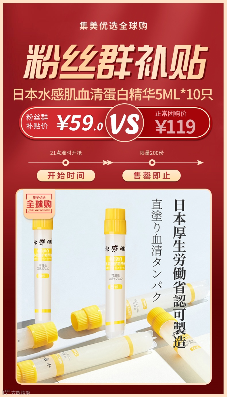 【粉丝群补贴】日本水感肌血清蛋白精华5ml*10只/盒 原价:119元 粉丝群补贴价:59元