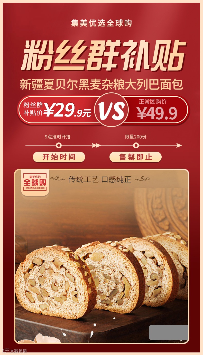 【粉丝群补贴】新疆夏贝尔黑麦杂粮大列巴 原价:49.9元 粉丝群补贴价:29.9元