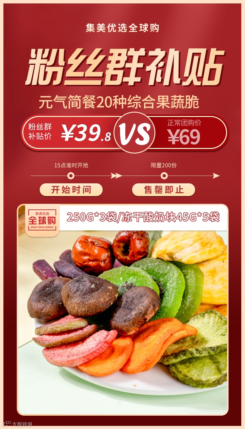 【粉丝群补贴】元气简餐20种综合果蔬脆250g*3袋/冻干酸奶块45g*5袋可选 原价:69元 粉丝群补贴价:39.8元