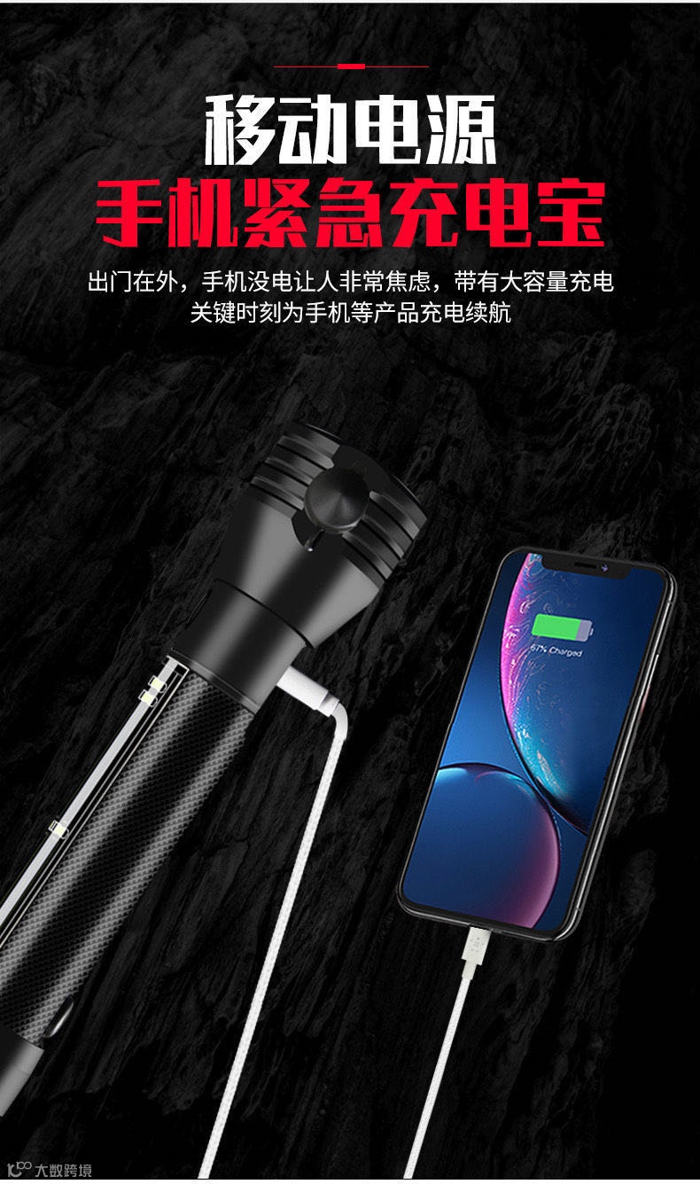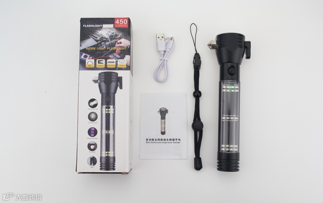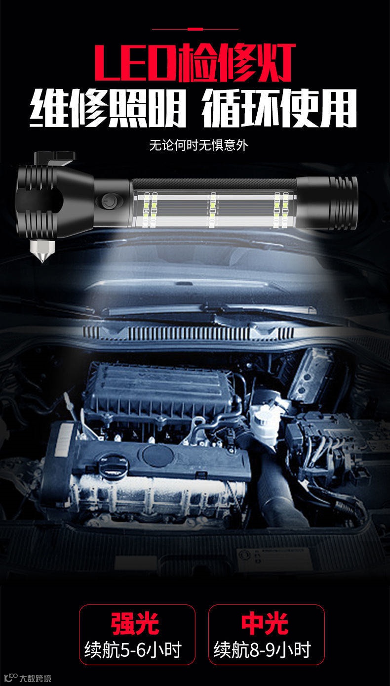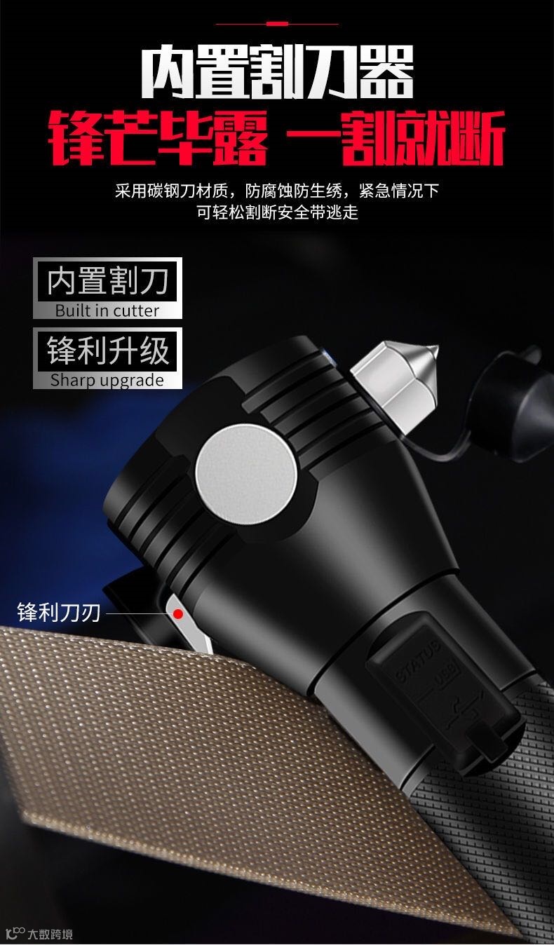 今天推荐这款手电筒,堪称多功能车载强光手电,不仅是手电,自带太阳能充电板,只要有光就有电,还有强磁吸附、破窗锤、割绳器、红蓝闪、警示喇叭、充电宝等功能