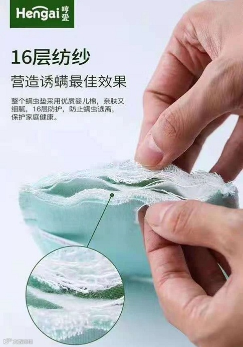 ⑤ 螨虫引诱率高达97%,将螨虫一网打尽。