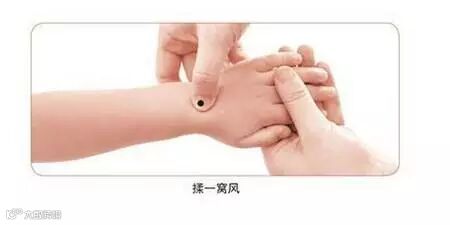 一窝蜂在腕背横纹中点处,有凹陷,专治孩子着凉肚子疼、流鼻涕。