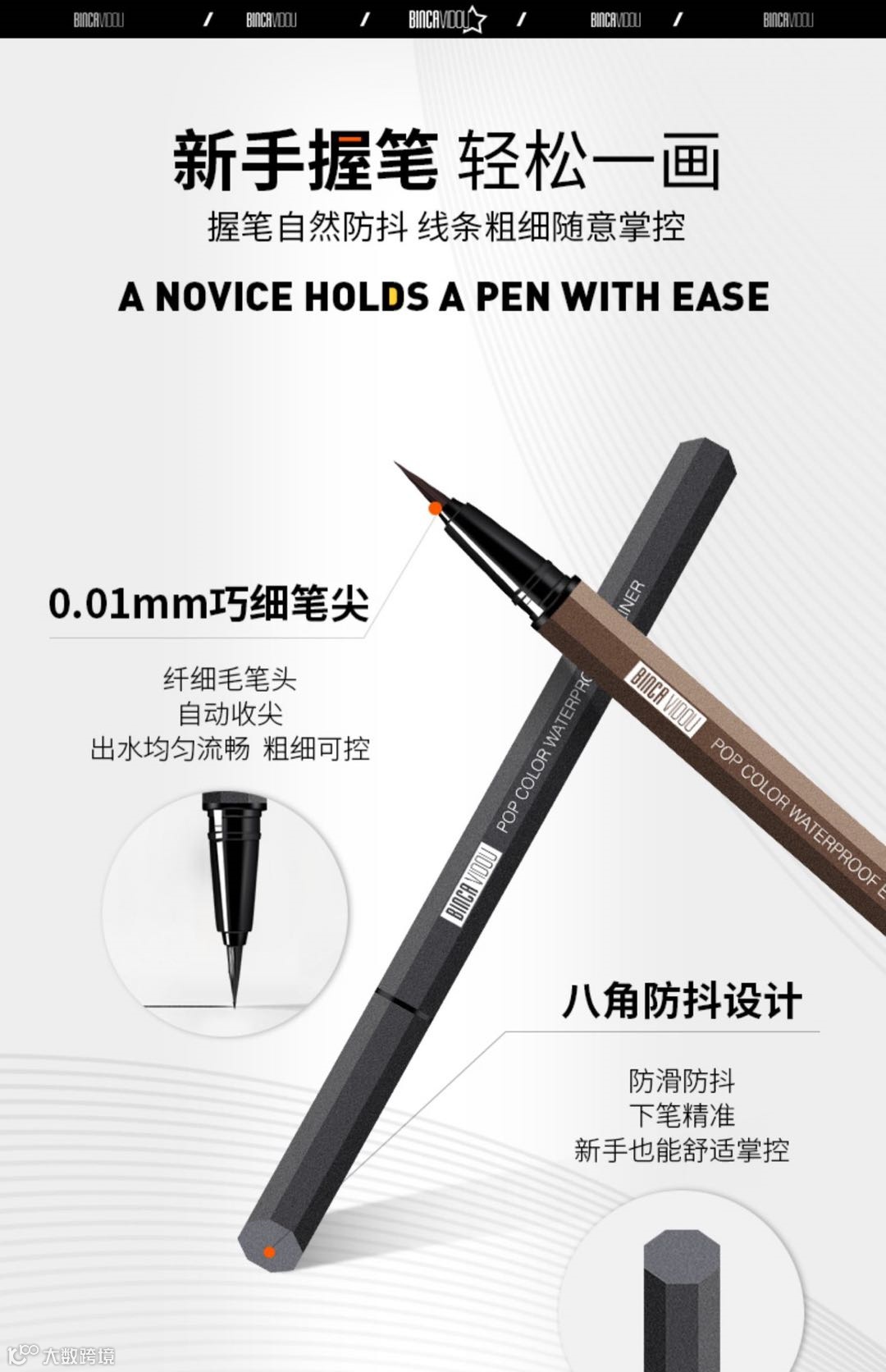 对于刚刚接触眼妆不久的“新手党”而言,手抖和手重往往是影响效果的重要因素。但是,用了波普恒彩眼线笔,就完全没有这种尴尬!超好拿捏的不规则笔身+极细笔头,就算你是新手,也能稳定发挥,不至于因为一点点小失误,出现整个眼妆都需要重新化的状况