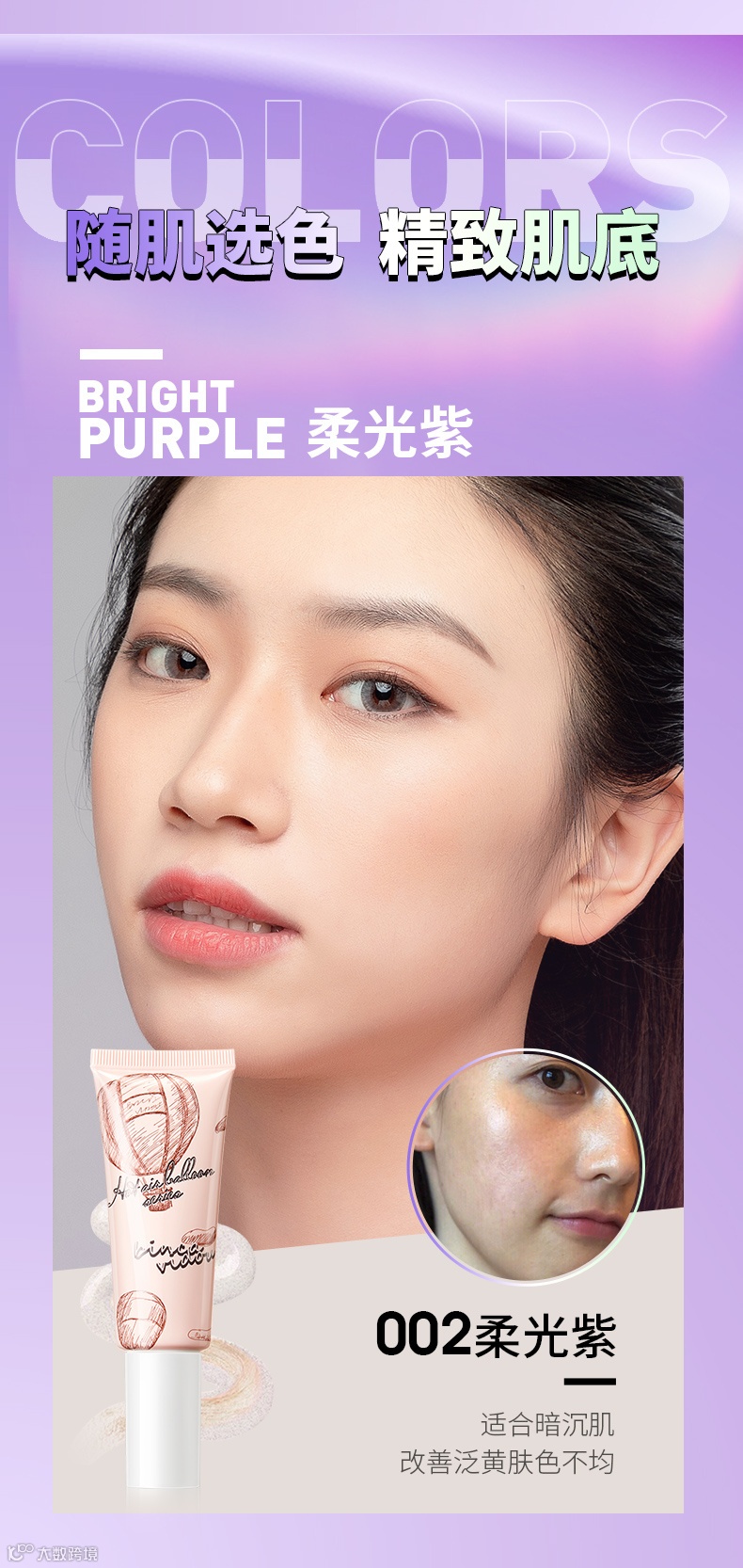另外它还贴心的设有两种色号,我是属于正常肤色,用的是紫色款~如果是有痘印或者红血丝的MM,建议选择绿色款哦!