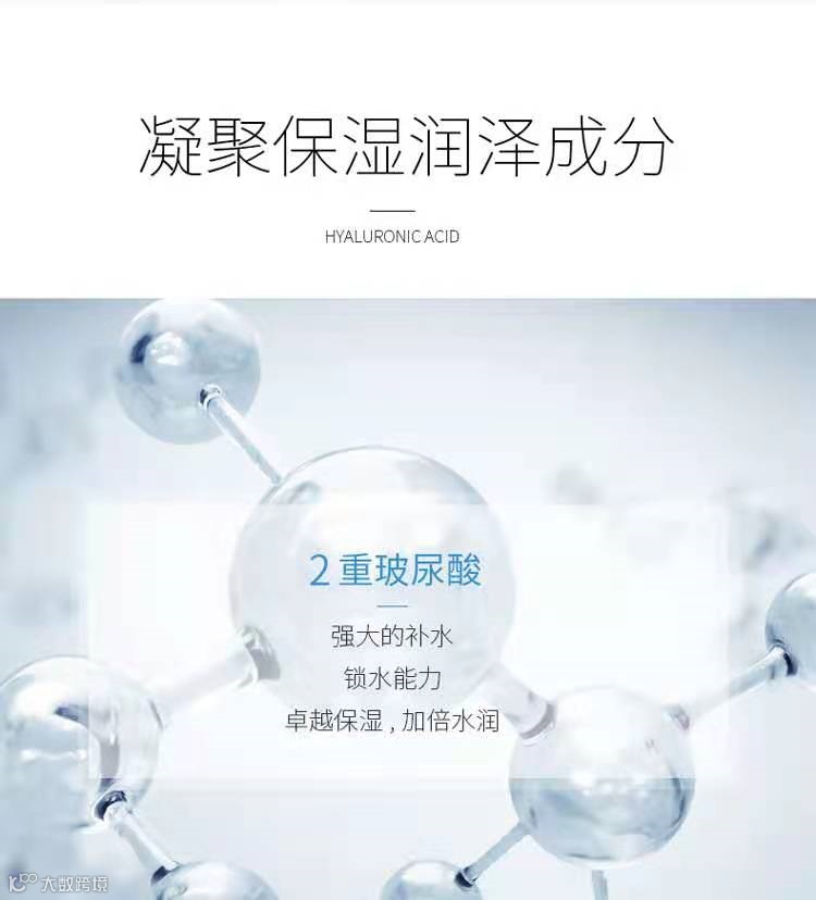 1:凝聚保湿润泽成分,2重玻尿酸,强大的补水锁水能力。