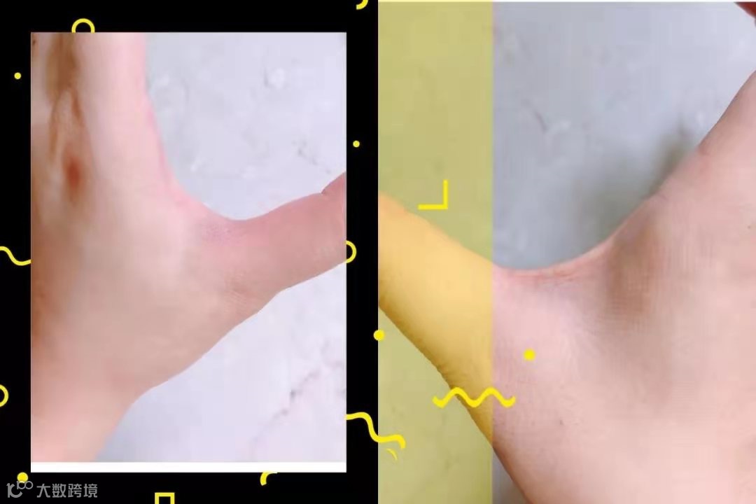 一个是左手喷了喷雾之后的,一个是右手什么都没有涂没有喷的,你们可以看下对比,还是很明显的~