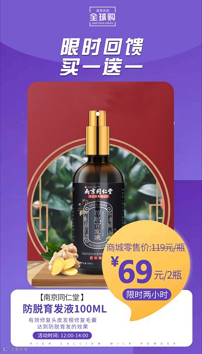 【大牌团购】南京同仁堂 防脱育发液100ml 买一瓶送一瓶 原价:119元 大牌团购价:69元