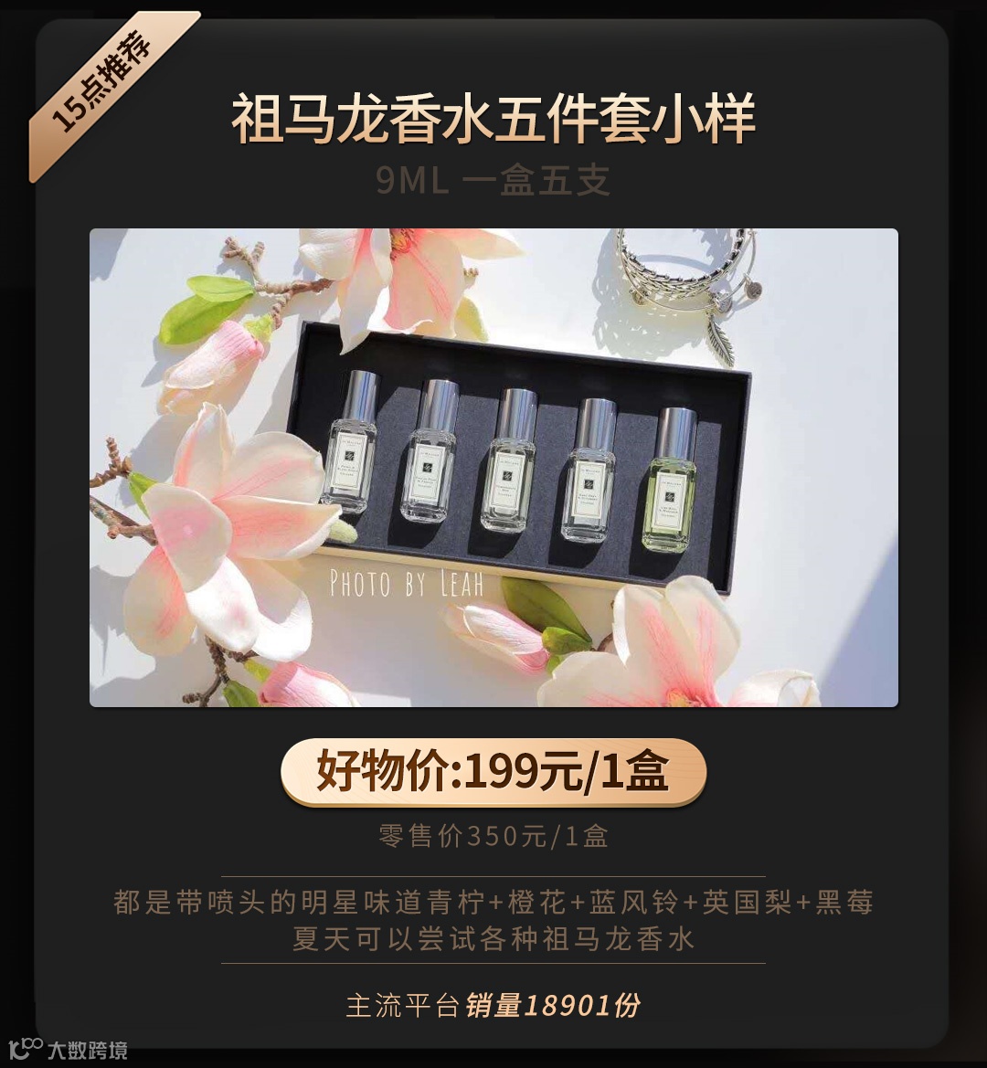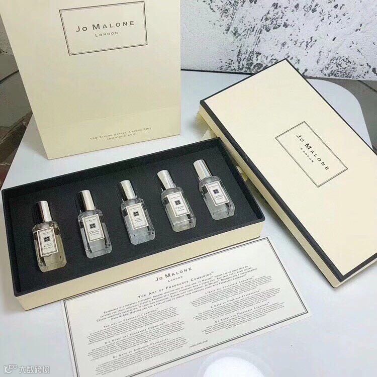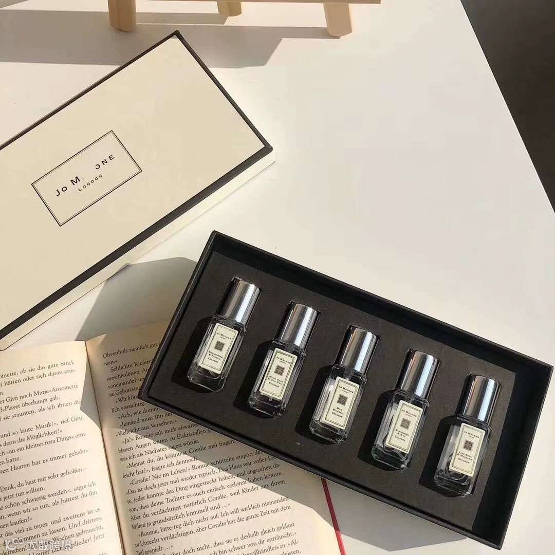 Jo Malone祖马龙香水小样五件套盒, 9ml*5瓶,一共45ml相当于一瓶正装,带喷头,香水中的贵族??你身上有她的香水味,一闻就没我的贵!都说祖马龙是个坑,买了再买,买它就对了?款味道:青柠檬桔+橙花+蓝风铃+黑莓+英国梨