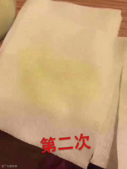 大家会看到化妆棉上有黄色, 黑色物质