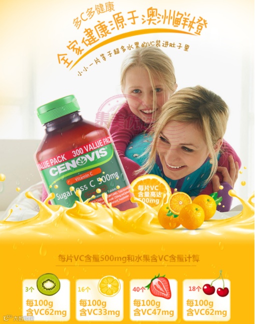 【大牌团购】Cenovis澳洲维生素C含片成人VC咀嚼片女性维C500mg300粒 原价:139元 大牌团购价:89元