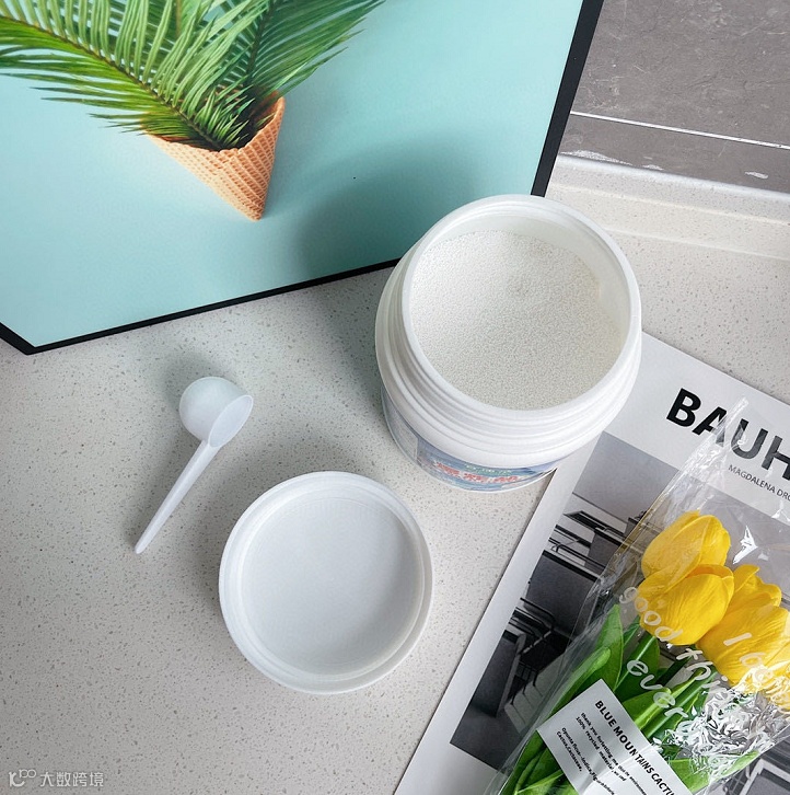桶装密封性强 爆炸盐呈白色颗粒状 ,添加了活性氧,酶和其他活性成分,这些盐可以渗透到衣服的织物中,从而达到去除黄色和漂白,强力去除顽固污渍的效果,同时进行消毒并保持衣服的原始颜色。