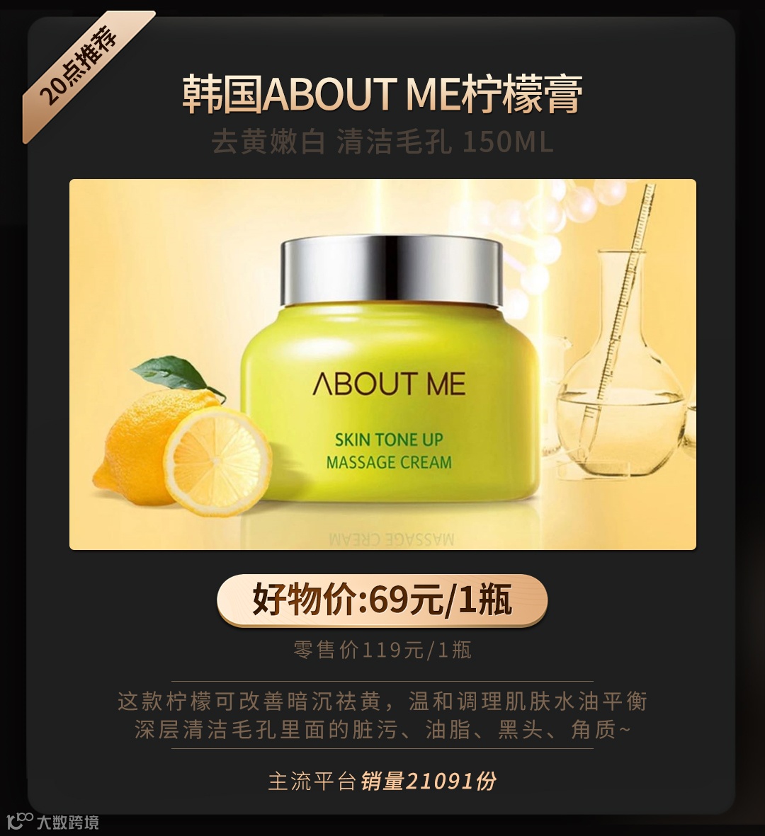 【大牌团购】韩国about me柠檬膏 150ml 原价:119元 大牌团购价:69元