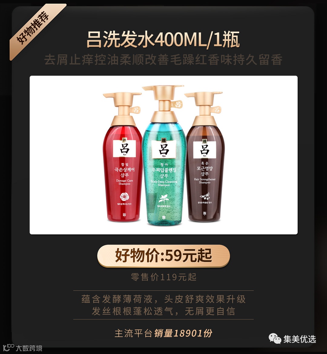 吕是爱茉莉旗下的高端护发品牌,很韩方,没有我们经常闻到的香精味,是一股浓浓的药材味道,吕很牛也很好用,在韩国ALLPUE美妆评选里面经常得奖。