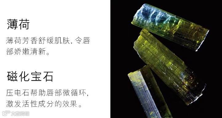 磁化宝石:压电石帮助唇部微循环,激发活性成分效果。