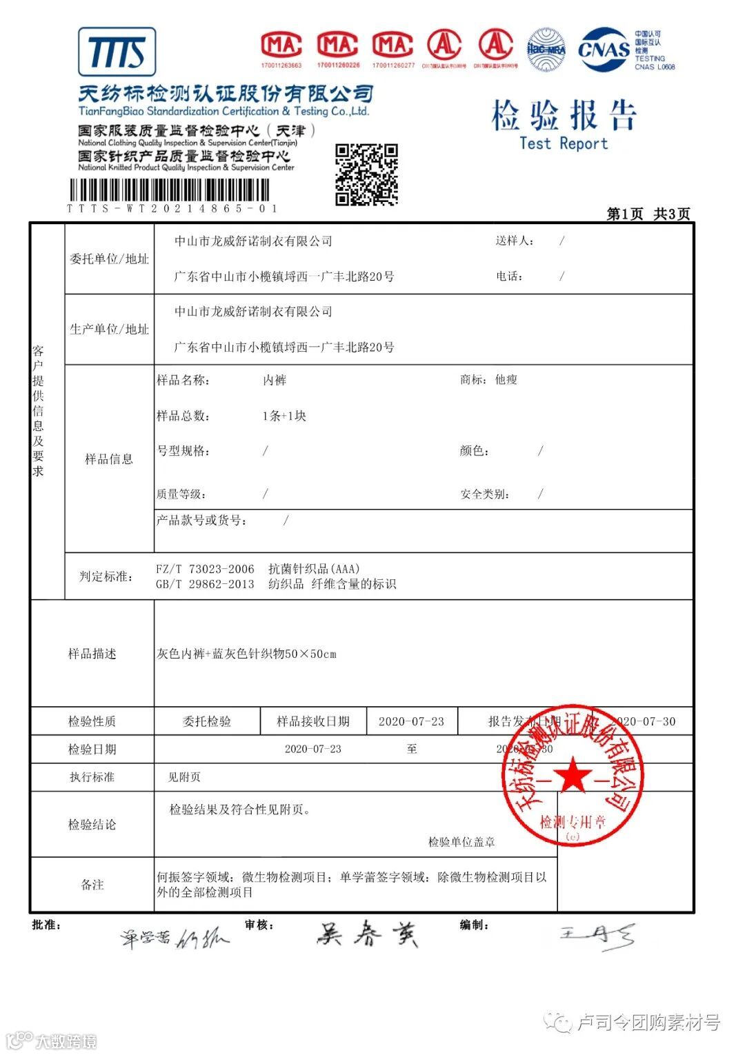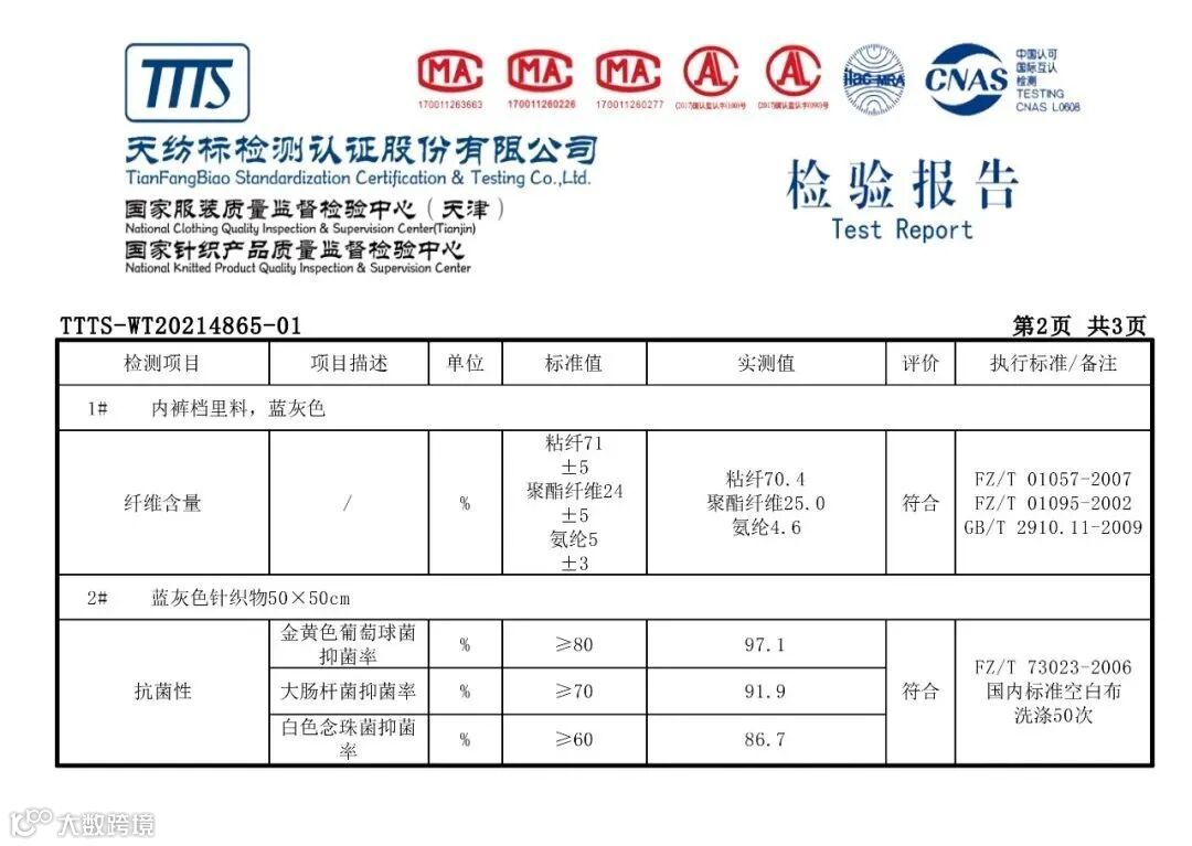·国家专业检测报告 让你买的放心 穿的安心