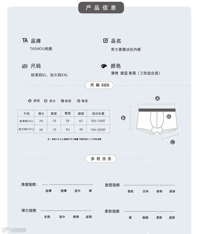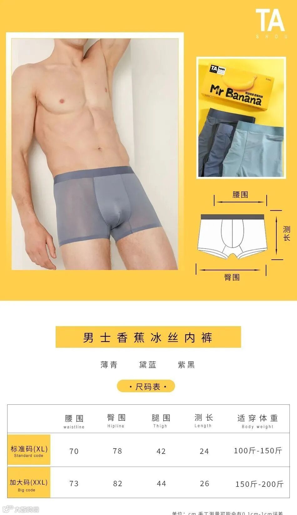 【品名】TASHOU他瘦男士香蕉冰丝内裤