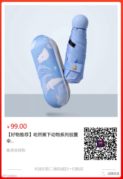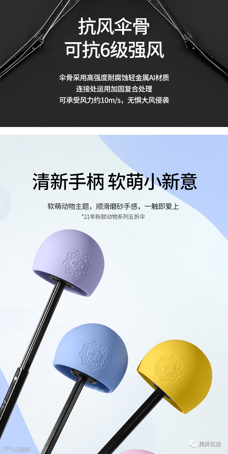 将小动物作为点缀打扮在伞上,这也是以往很少见到,足够新颖也足够时尚,而且也满足和符合大众的喜好。