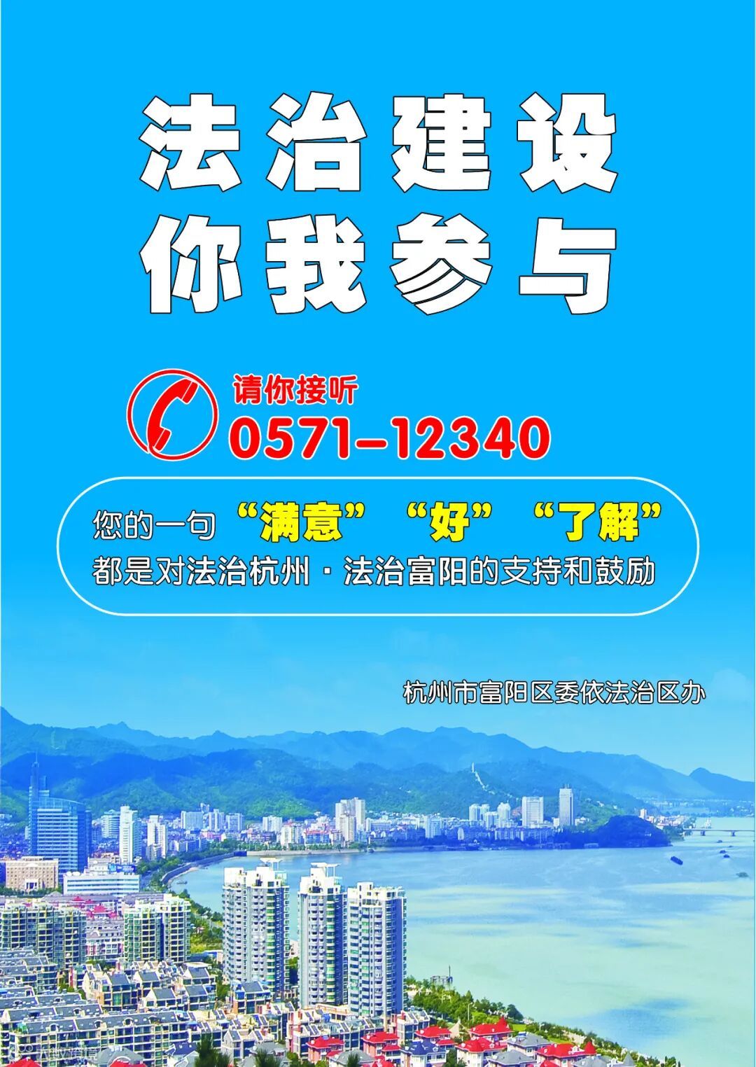 建设法治富阳是我们不懈的追求!法治富阳建设,离不开您的大力支持!衷心希望工作、生活在富阳的全区人民、各界朋友,共同关心、参与法治富阳建设。您的满意是对我们工作的最大奖励,您的点赞将激励我们做得更好!