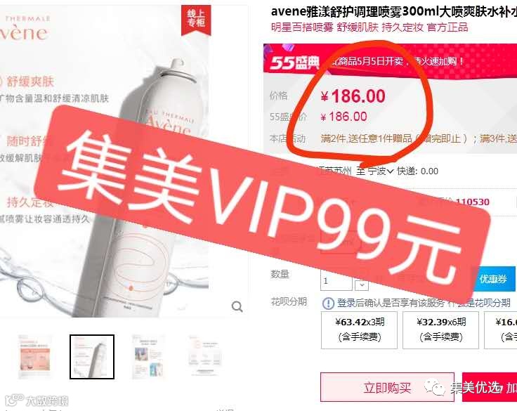 【限时秒杀】法国Avene雅漾 舒护活泉喷雾化妆水爽肤水 300mL 原价:119元 SVIP福利补贴价:99元 夏季高温吹空调