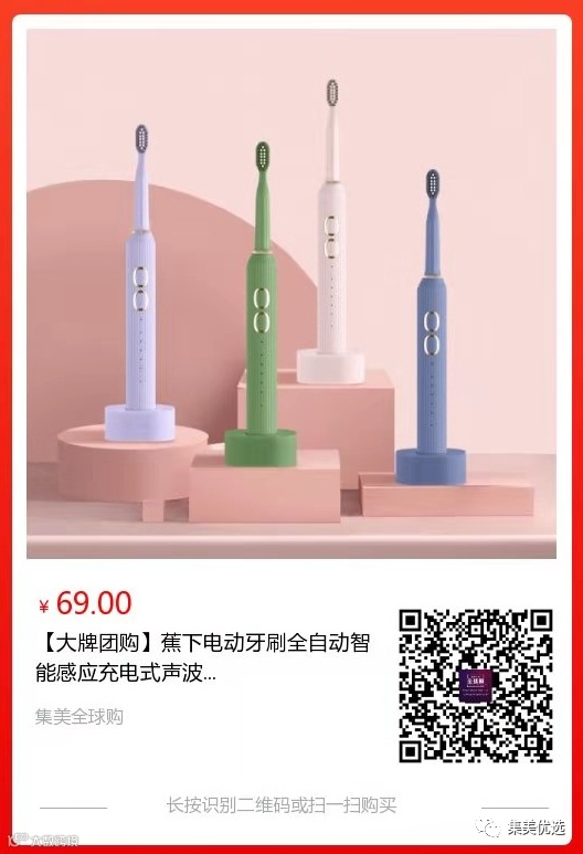 【大牌团购】蕉下电动牙刷全自动智能感应充电式声波 原价:88元 SVIP福利补贴价:69元 高颜值小家电!颜控的我打开包括的一刹那心都要化了,从里到外真的是少女心炸裂 颜值也太高了叭