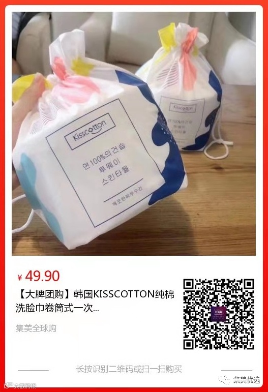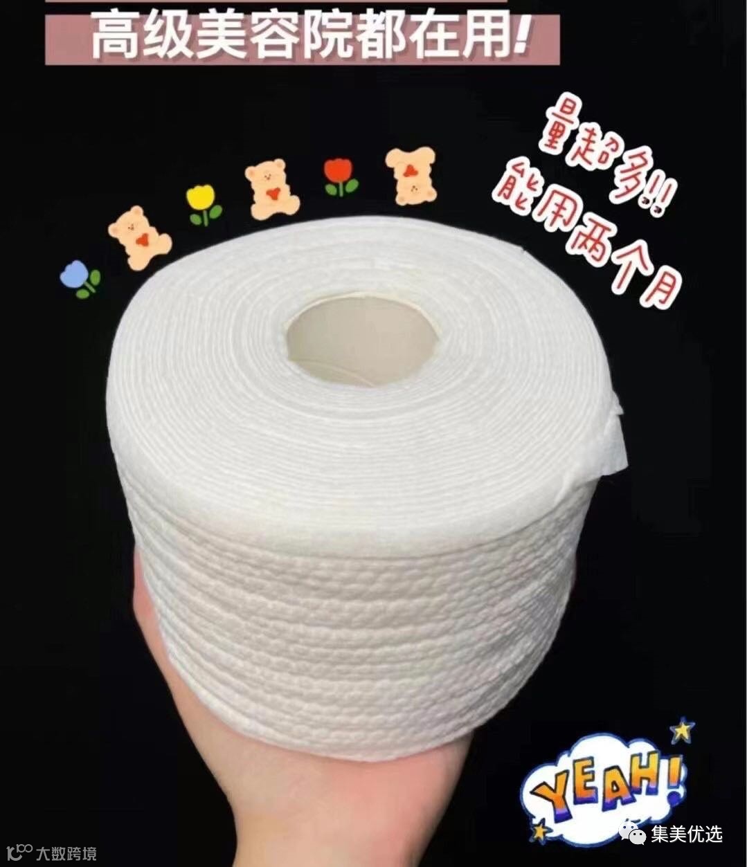 【大牌团购】韩国KISSCOTTON纯棉洗脸巾卷筒式 5卷 原价:99元
