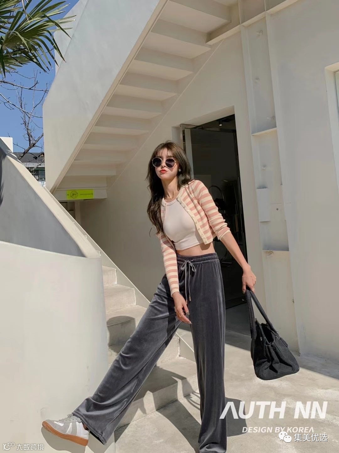 上身简约不失优雅,经典又百搭,最最重要的是它能让你秒瘦10斤,宽大的裤管还能将你腿上的所有缺点都隐藏掉!