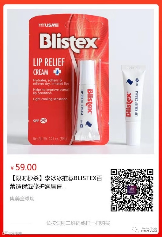 这只小白管是Blistex最火爆的一款,李冰冰和李佳琦都安利过。