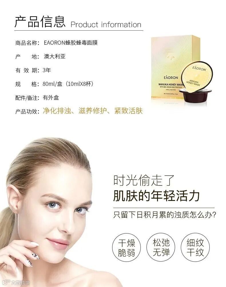 来自澳洲一线护肤品牌Eaoron蜂毒面膜。