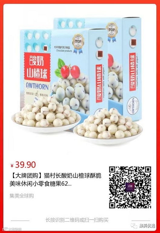 【大牌团购】猫村长酸奶山楂球 62g*8盒 原价:59元 SVIP福利补贴价:39.9元 当酸奶巧克力撞上酸甜山楂