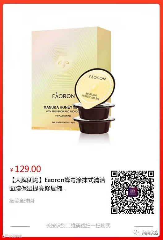 【大牌团购】Eaoron蜂毒涂抹式清洁面膜 2盒 原价:169元 SVIP福利补贴价:129元 今天给大家介绍一款护肤黑科技,