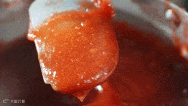 做好的山楂酱色泽红润,气泡小密集且均匀