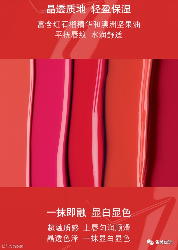 使双唇更立体饱满,质地轻薄柔滑,持久滋润保湿