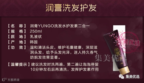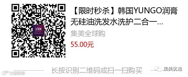 【限时秒杀】韩国 YUNGO润膏 无硅油洗发水洗护二合一 原价:79元 VIP /黑卡M1会员 福利补贴价:55元 【韩国LG润膏洗发水】coco香奈儿香水的味道~它是浓缩型的,所以每次洗发挤一点点就够了,洗完也不用护发素,无硅油!真的改善烫染后的毛躁,还能预防脱发!