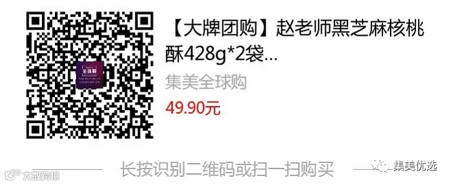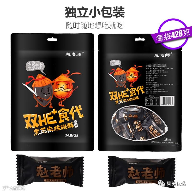 【大牌团购】赵老师黑芝麻核桃酥428g*2袋 原价:69元 VIP /黑卡M1会员 福利补贴价:49.9元 推荐给大家这款赵老师黑芝麻核桃酥,不可复制的核桃酥,吃了还想吃,资深吃货欲罢不能款