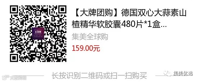 【大牌团购】德国双心大蒜素山楂精华软胶囊 480片 原价:199元 VIP /黑卡M1会员 福利补贴价:149元 无论是患有高血压、糖尿病,