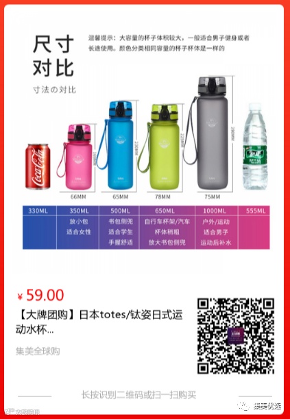 【大牌团购】日本totes/钛姿 日式运动水杯 原价:99元 大牌团购价:59元起 五月,正是外出游玩的好季节~