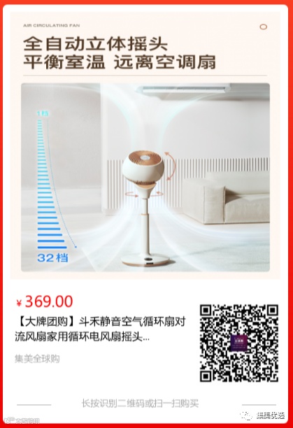 【大牌团购】斗禾静音空气循环扇 原价:432元 大牌团购价:369元