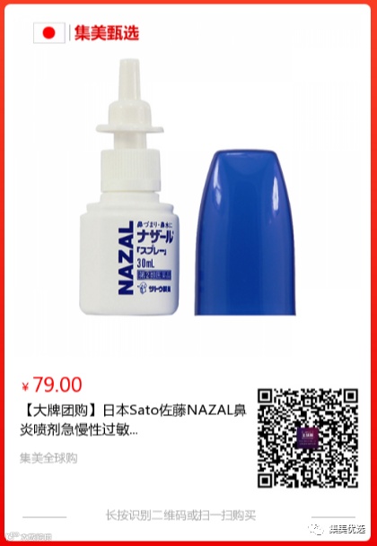 【大牌团购】日本Sato佐藤NAZAL鼻炎喷剂30ml/1支 原价:109元 大牌团购价:69元 不少鼻炎患者每当到了换季或者是天气较冷的季节,就会出现鼻涕增多以及喷嚏不断的情况。很少有一款药物能够缓解过敏性鼻炎和慢性鼻炎。