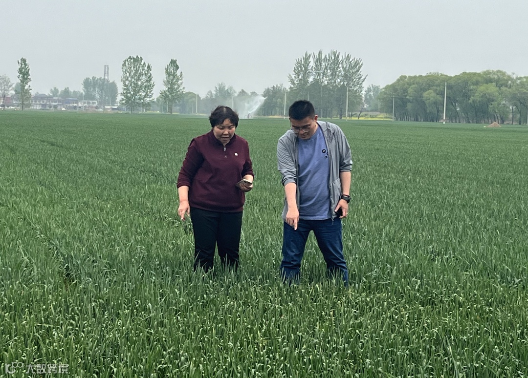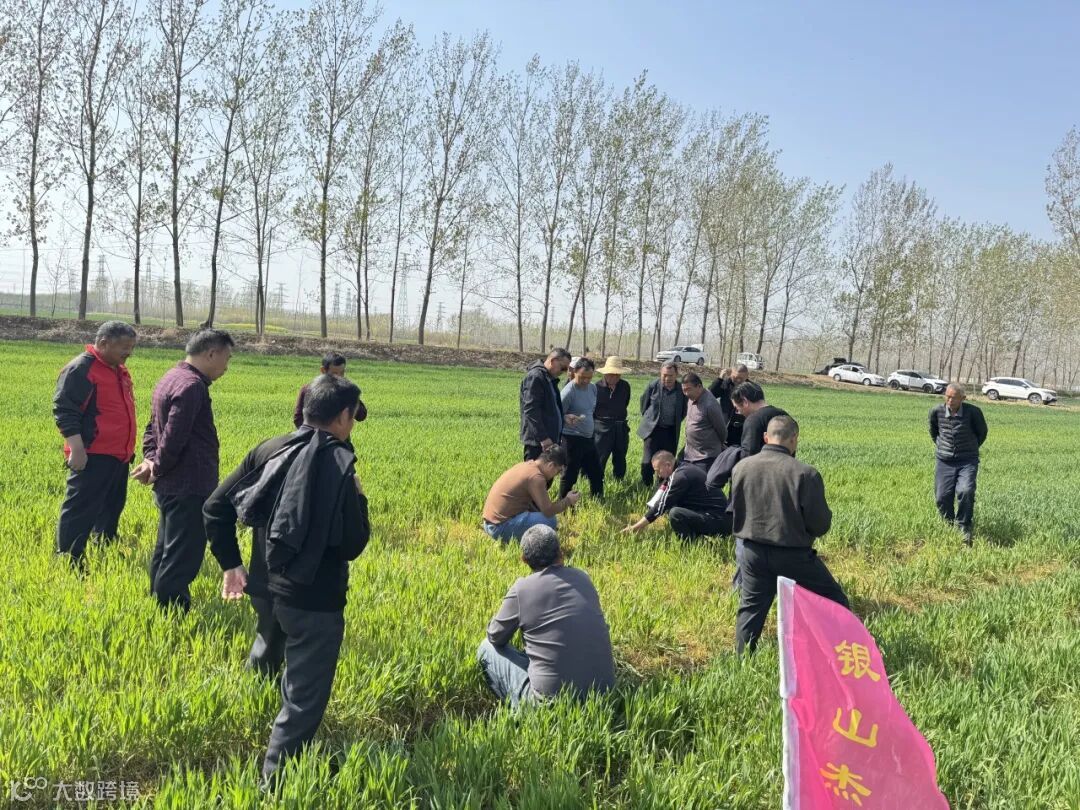 4月9日,银山药业业务员刘坤与河南西平县经销商深入田间地头,查看小麦生长情况,了解近期干旱天气对小麦的影响。