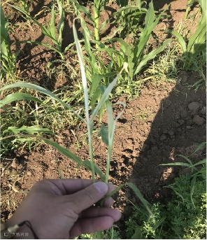 2020年6月21日(药后第5天)观察:15ml,18ml均对玉米安全,杂草叶尖黄花失绿