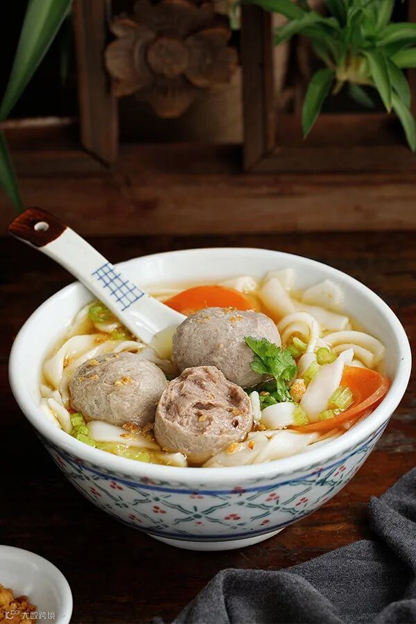 它的吃法非常的百搭,特别是早餐的时候,一碗米粉或者面条,加上几颗丸子,汤汁马上鲜香四溢!