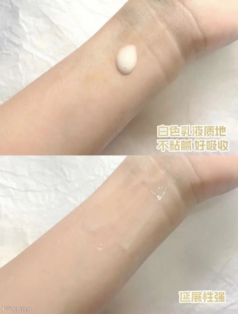 半透明乳液,很好推开,它的质地非常清透,上脸一抹就吸收了,不会有黏糊糊的厚重感,最大的优势就是特别水润,不像一般美白精华会拔干,后续上妆很OK。使用感非常舒服,没有猛药的激进感,可以叠加其他功效性精华,毫无负担。