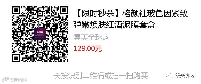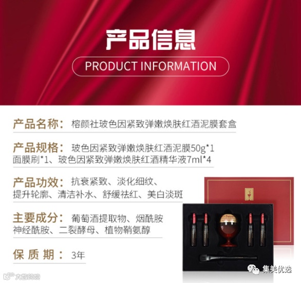 【限时秒杀】榕颜社玻色因紧致弹嫩焕肤红酒泥膜套盒 原价:299元 VIP /黑卡M1会员 福利补贴价:129元 全球首款“桑拿热膜”,一款能挑起味蕾的面膜,淡雅的红酒清香,细腻却不失骨气,平衡又有力量,柔滑优雅又带着铿锵斗志!在清洗数分钟后依然脸颊留香,令人流连忘返!