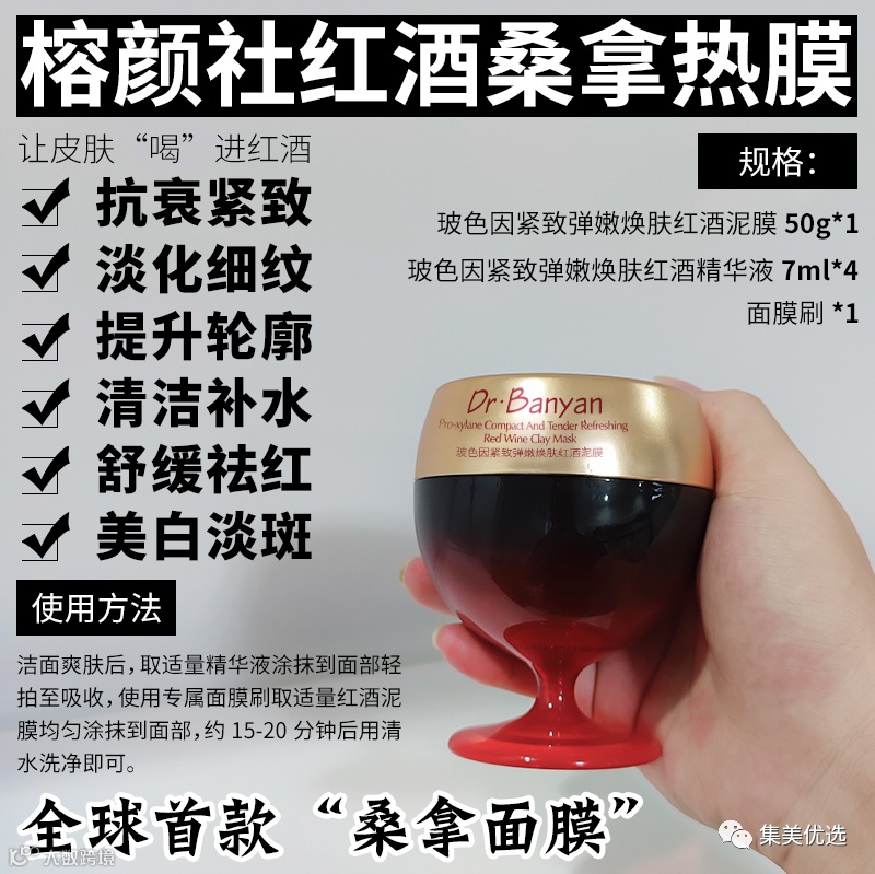 一款含有玻色因的红酒泥膜,一杯搞定各种皱褶,让年龄成谜!抚纹效果媲美肉毒针!玻色因作为王牌抗衰成分,赫莲娜的黑白绷带、欧莱雅的紫金面霜等核心成分!除了最重要的玻色因、红酒桑拿热膜中还添加了成分党们最爱的一些成分!